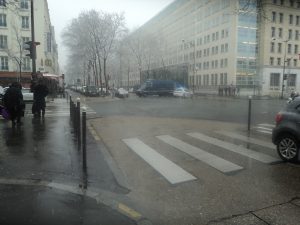 Le retour a été moins drôle: quand on est sorti du ministère, il a  d’abord commencé à neiger… Dans une ambiance glauque, des infirmières manifestaient entre des cars de CRS…Quelle tristesse ce gâchis humain, tout cela parce qu’il y a des actionnaires qui misent sur nos têtes au nom de la rentabilité.