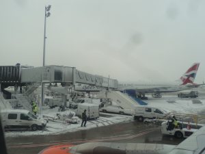 et là, badaboum, évidemment entre les courants d’airs  et les  centaines de gens réunis, c’était bon pour se prendre tous les virus de France et de Navarre….Il faut être motivé…..On s’en souviendra Mais ce n’est pas tout…. A 11h enfin, un avion a été mis à disposition grâce à  une ouverture climatique. Nous voilà heureux de pouvoir retrouver nos douces pénates, mais en général, quand cela démarre mal, c’est la loi des séries. Heureusement, je vous rassure, cela s’est terminé finalement « bien ». Mais revenons au début de notre vol: j’avais trouvé un bruit bizarre venant d’un moteur mais bon, n’étant pas mécano, je ne pouvais juger. Arrivé à Toulouse, l’avion allait à une telle vitesse que, à peine posé, il a été obligé en bout de piste de remettre les gaz et de décoller à pic.  Une grosse émotion. Silence de tous, le cœur serré. Pour le même prix, on a fait deux fois le tour de l’aéroport. Quand l’avion s’est posé en bout de piste, tout le monde a applaudi. Cela devait être un problème de dégivrage? Une belle frayeur en tout cas.
