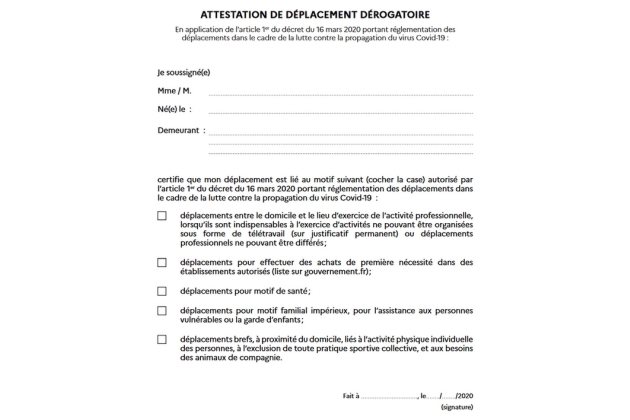 Coronavirus : comment télécharger l’attestation de déplacement dérogatoire ?